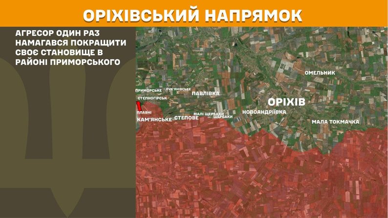 Водночас на Оріхівському відтинку фронту Сили оборони відбили один російський штурм в районі Приморського.