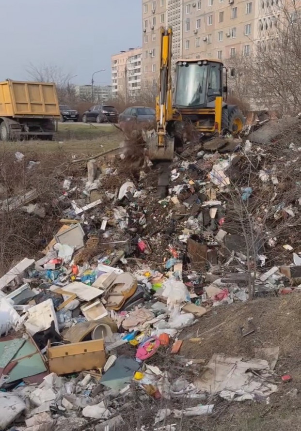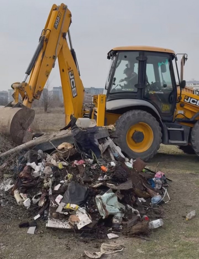 Зрештою ситуація дійшла до тієї межі, коли без важкої техніки вже не обійтися. Для прибирання залучили екскаватор, яким викопували шари відходів, а вантажівки відправляли їх на полігон. Загалом з однієї цієї ділянки вивезли 22 тонни сміття.