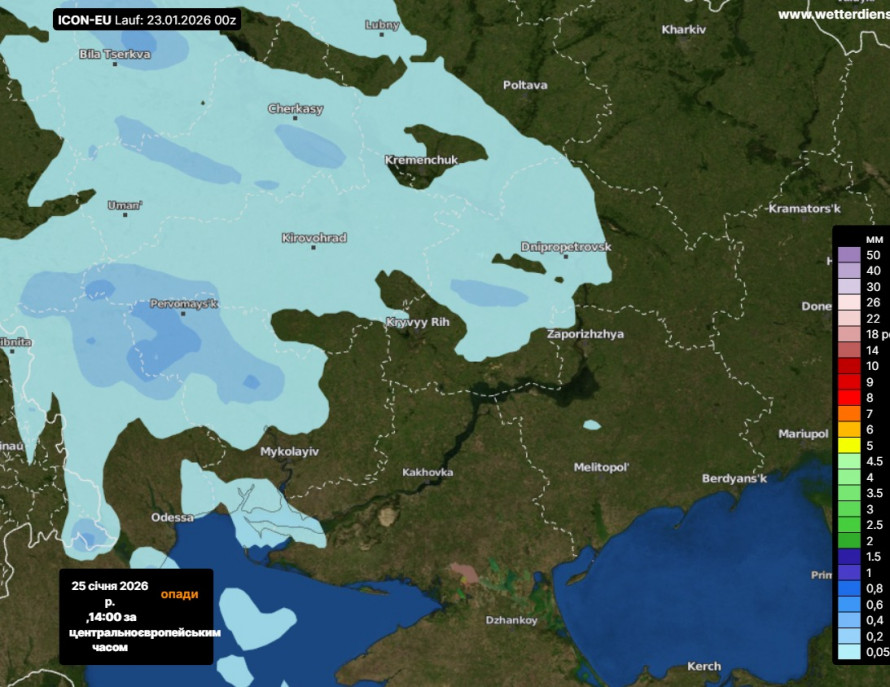 За словами синоптиків, на 24–25 січня прогнозується періодична зміна характеру погоди: залишки морозів поєднуватимуться з новими тенденціями — снігом, мокрим снігом і рвучким східним вітром. На півдні країни, зокрема й у Запорізькій області, подекуди можливі навіть змішані опади з дощем.