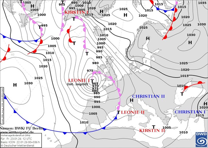 Антициклон, який кілька днів утримував холодну, але відносно стабільну погоду, поступово руйнується. Йому на зміну приходять циклони з атмосферними фронтами, що приносять вологу, хмари та опади.