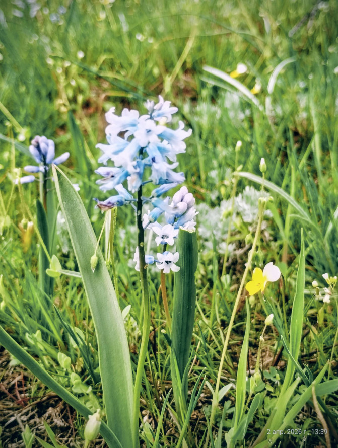 Гіацинтик блідий приваблює ніжним блакитним кольором. Росте на кам’янистих і сухих ділянках. Його аромат не такий яскравий, як у садових гіацинтів, але саме природна скромність робить цю рослину особливою.