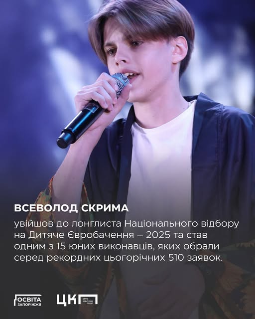 Мешканець селища Балабине Запорізького району 13-річний Всеволод Скрима потрапив до фіналу Національного відбору на Дитяче Євробачення – 2025. Імена фіналістів оголосили 28 вересня під час п’ятого випуску музичного реаліті-шоу «Щоденники Дитячого Євробачення». Найсильніших учасників обирали за результатами літньої «Зіркової школи».