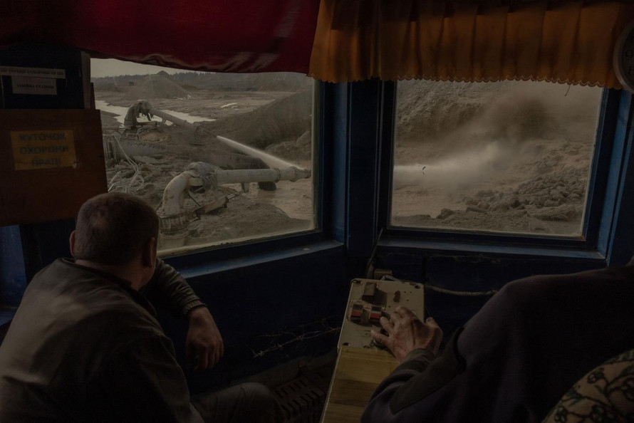 Ще одне фото з України показує, як у розпал війни Росії проти України робітники працюють на відкритому титановому руднику в Житомирській області 28 лютого. Автор фото: Роман Піліпей, AFP.