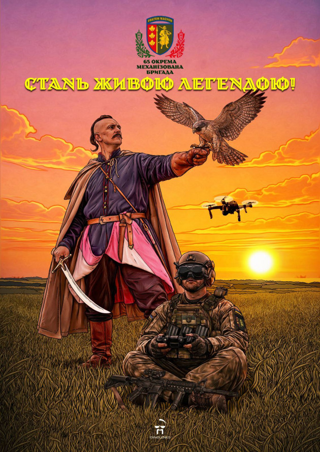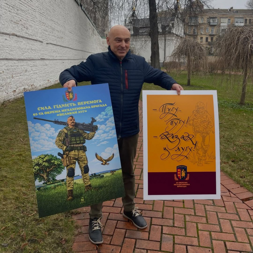 «Для 65 окремої механізованої бригади зробив серію плакатів, буде ще! Великий Луг — батько! Дякую Ігор Захаренко!» — написав на своїй сторінці у фейсбуці Андрій Єрмоленко та опублікував декілька плакатів.