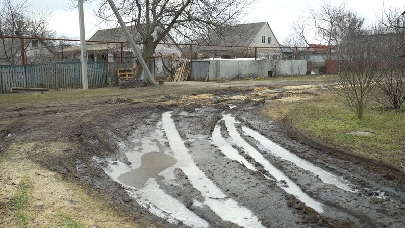 Під час відлиги навіть пішки складно пересуватись дорогами Розумівки. Місцеві кажуть: це становить небезпеку під час обстрілів, адже ускладнює можливість швидко виїхати або дістатися укриття.
