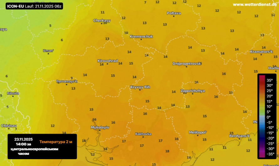 У нічні та ранкові години можливий туман, що утворюється через поєднання високої вологості та аномального тепла. Удень повітря знову прогріється до +16…+18°C, а вітер повернеться на південний схід, 7–12 м/с.