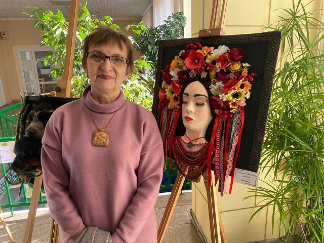 Виготовляла Віра Бочарь красуню трохи більше місяця. Обличчя — з самозастигаючого пластику, виліплювала все з нуля, волосся у ляльки — з вовни, голову українки прикрашає вінок з декоративних квітів, а шию — дуже гарне намисто.