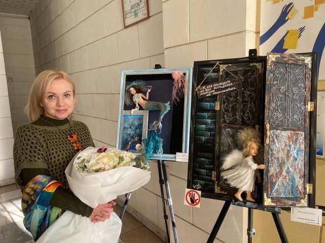 Альона Вовненко ляльки виготовляє, за її словами, вже років 10 точно. На виставку Альона представила дві роботи — “Мрія про океан” і “Невипадковість”.