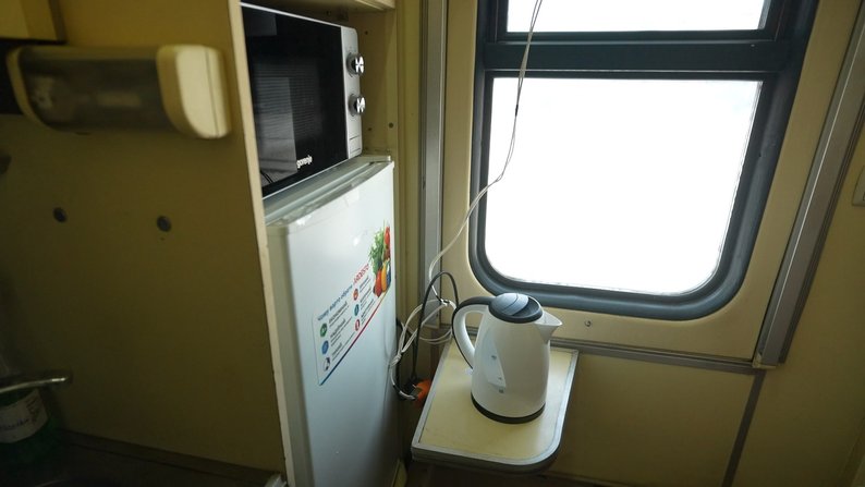 У "вагоні незламності" є все, що необхідно для комфортного перебування: тепло, електрика, мікрохвильова піч, холодильник, Starlink для зв’язку та аптечка, розповідає заступник начальника залізничного депо Роман Горбан: