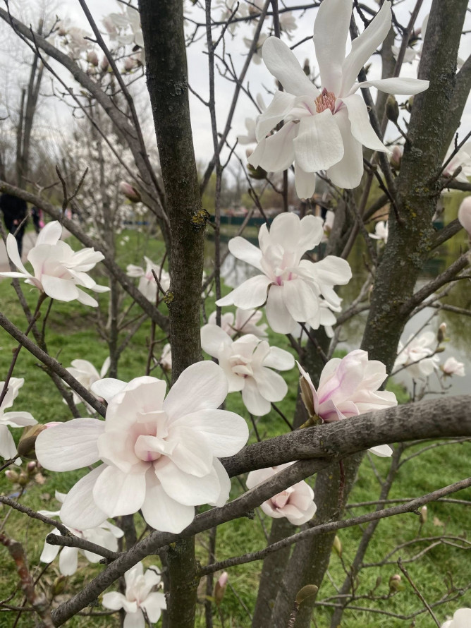 Раніше ми писали, що у запорізькому парку «Дубовий гай» розквітли ніжні білі магнолії. Тож вихідні — чудова нагода помилуватися цією красою.