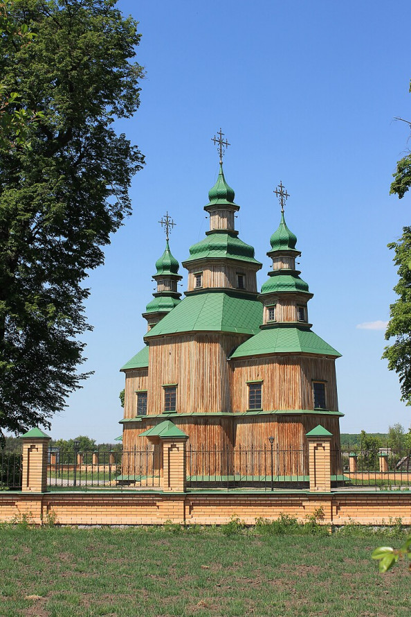Січова церква виготовлена із сосни і являє собою зрубну 3-банну конструкцію. Довжина будівлі — 18,7 м, ширина — 10,8 м. Вершина купола сягає 25 метрів над землею, а до верхівки хреста – 27 метрів.