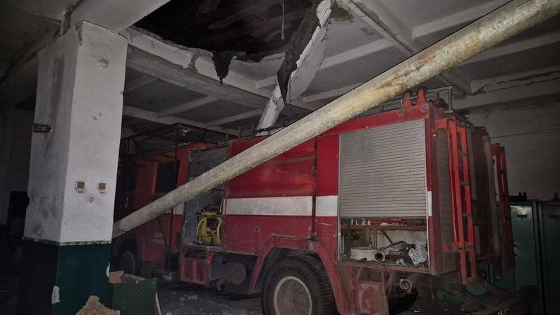Зазначають, що внаслідок обстрілу пошкоджена пожежна техніка, покрівля будівлі, вибиті двері та вікна: