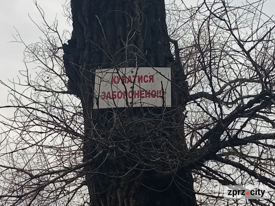 Взагалі у воєнний час не можна знаходитись на узбережжі Хортиця. Але це — житлова зона на острові Хортиця, вулиця Наукове містечко. На пляжі є попередження, що купатися заборонено. Втім, саме по узбережжю зараз ходити і незручно — мокрий пісок, багнюка. Краще дивитись здалеку.