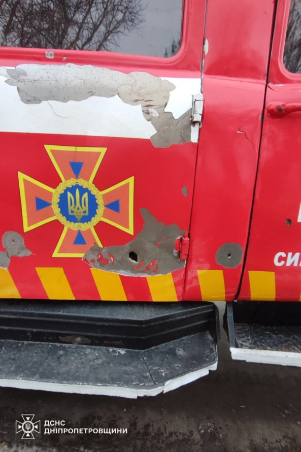 Ще один випадок атаки по службах порятунку зафіксували на Дніпропетровщині. У Синельниківському районі під час ліквідації пожежі ворог здійснив повторний удар безпілотником. У результаті атаки було пошкоджено пожежний автомобіль. Рятувальники встигли відійти на безпечну відстань, постраждалих немає.