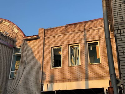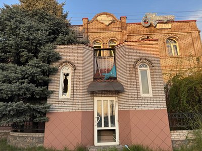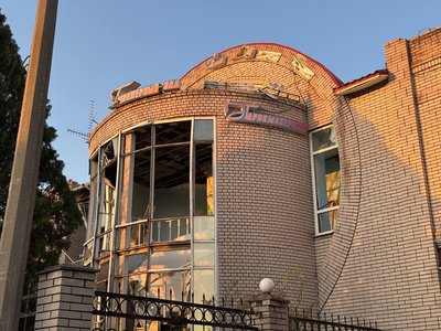 Зазнала руйнувань й будівля готелю — вибиті вікна, понівечений фасад та зруйнована частина конструкцій.