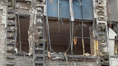Пошкоджена будівля готелю у Запоріжжі, внаслідок повторного російського обстрілу, 16 квітня 2026 року. Суспільне Запоріжжя