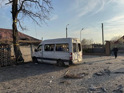 Пошкоджений мікроавтобус у Запоріжжі, внаслідок повторного російського обстрілу, 16 квітня 2026 року. Суспільне Запоріжжя
