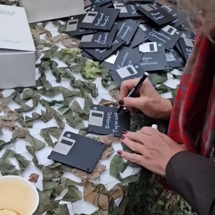 Дискети обрали як символ носіїв людської пам’яті, інформацію з яких неможливо відновити. Тож ця деталь мала глибокий сенс – так само як дані зі старих дискет, життя загиблих людей вже не повернути, зазначається в описі проєкту.