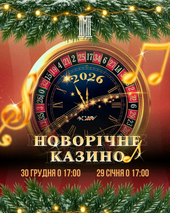 — 30 грудня о 17.00 — прем’єра театралізованого концерту “Новорічне казино”.