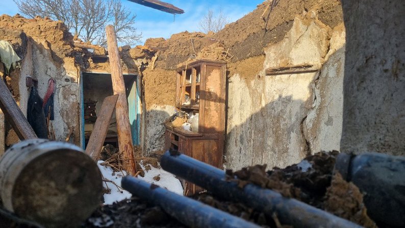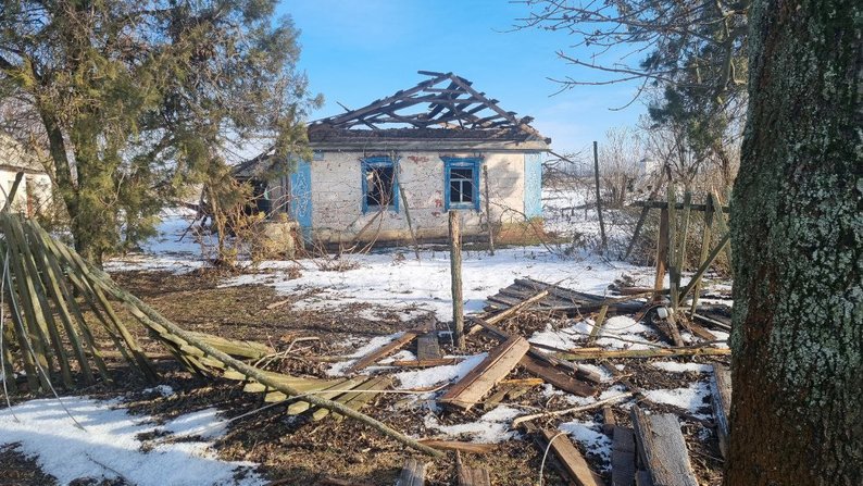 Зруйнована хата внаслідок обстрілів РФ, село Варварівка, Запорізька область, січень 2024. Фото: Суспільне Запоріжжя