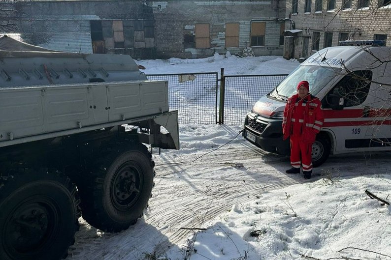 Рятувальники допомагають витягнути швидку . ГУ ДСНС Запорізької області