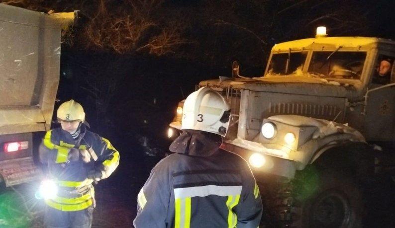 Рятувальники допомагають витягнути з кювету вантажівку. ГУ ДСНС Запорізької області