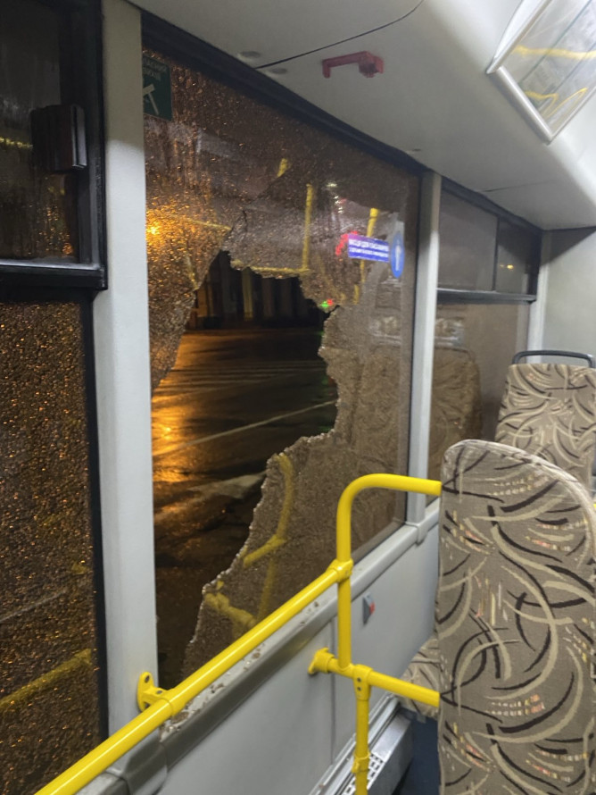Зазначається, що внаслідок дій невідомих у салоні автобуса постраждали три бокові вікна. Два з них отримали тріщини, ще одне — розбилося. Частина скла обсипалася, тому транспорт зупинили та вжили заходів безпеки.