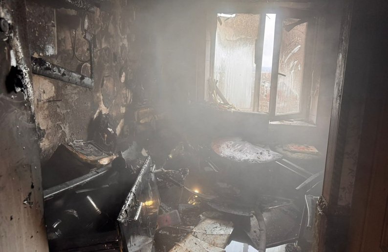 Наслідки пожежі, Запоріжжя, 17 грудня 2025 року. ГУ ДСНС в Запорізькій області"Під час гасіння пожежі надзвичайники врятували 56-річного власника квартири та вивели його на свіже повітря. Медична допомога чоловіку не знадобилась".
