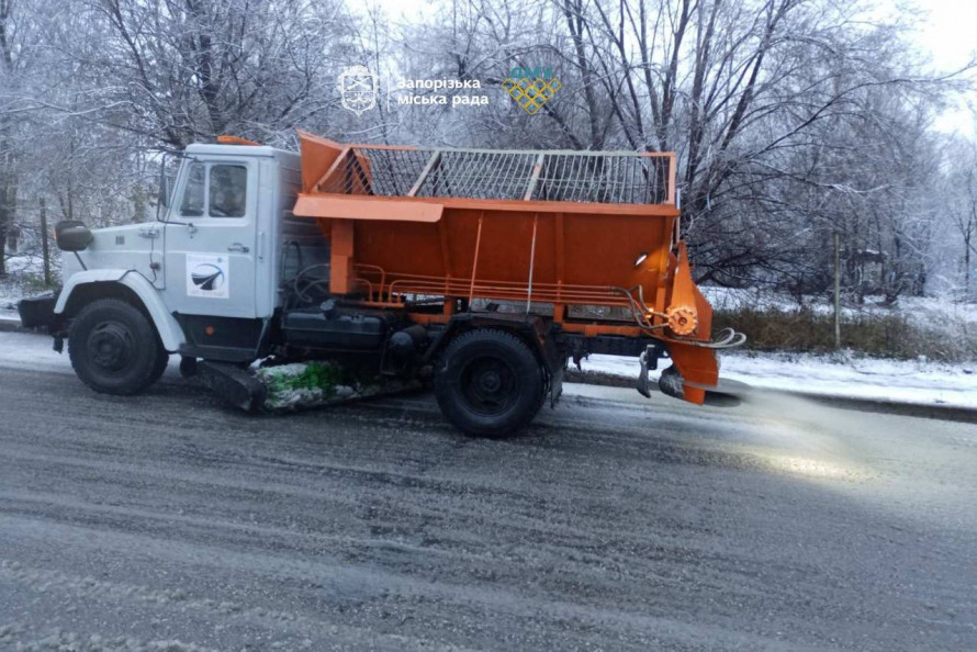 «Комунальники оперативно відреагували на погіршення погодних умов. Вже о 4:30 10 грудня працівники КП «ЕЛУАШ» почали посипати дороги антиожеледними матеріалами», — повідомили на сайті Запорізької міської ради.