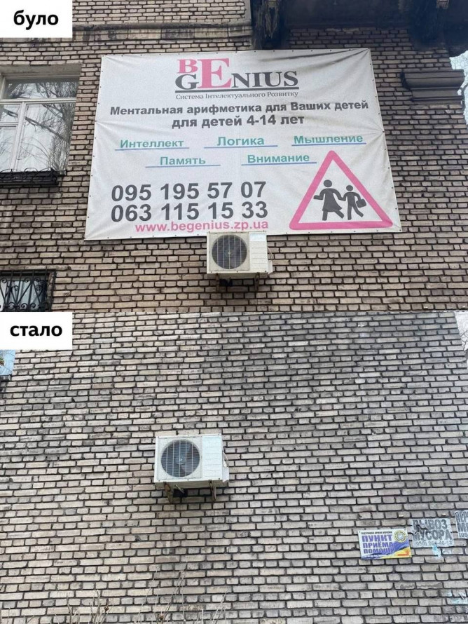«На вулицях Запоріжжя фасади очищуються від чужих слів, застарілі назви змінюються — місто повертає собі власний голос. Не втомлюємося нагадувати, що за цим стоїть кропітка робота комунальних служб, які прибирають зайве і звільняють місто від візуального хаосу. Це непомітна праця, але саме вона створює відчуття порядку й нового дихання міста. Будь-які зміни завжди починаються з маленьких кроків — помічайте», — зазначають у міській раді.