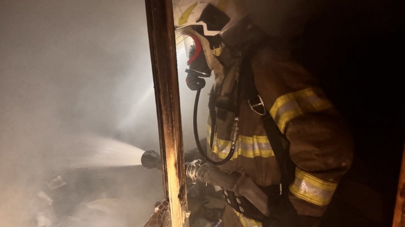 Рятувальник гасить пожежу в квартирі. Запоріжжя, 22 грудня 2025 року. ГУ ДСНС України у Запорізькій області