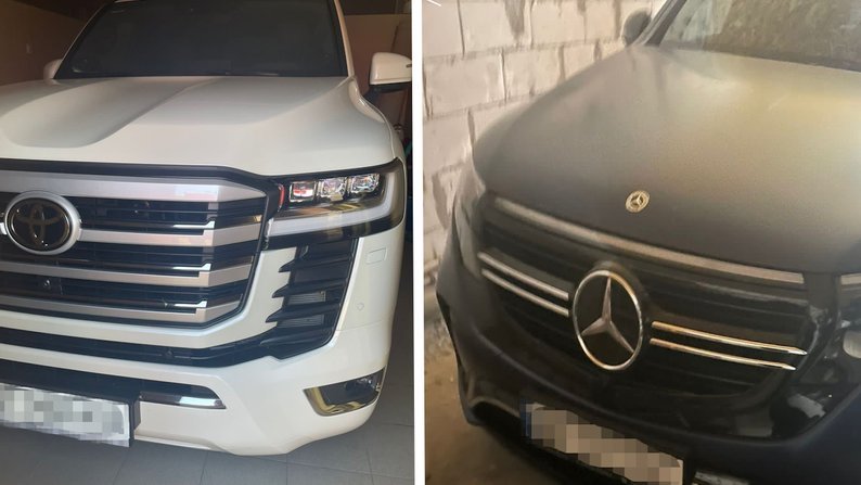 - елітні автівки: "Toyota Land Cruiser 3.3 Twin Turbo, 10 AT Premium PD" (2022 р. в.), "Mercedes-Benz EQC 400" (2021 р. в.) та "Volkswagen Touareg" (2020 р. в.).
