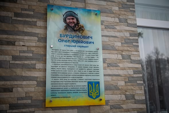 На фасаді запорізького ліцею з’явився меморіальний знак на честь його випускника – старшого сержанта Олега Юрійовича Бурдиновича з 23-ї окремої бригади «Хортиця» НГУ. Про це повідомили представники бригади на своїй сторінці у соціальній мережі.