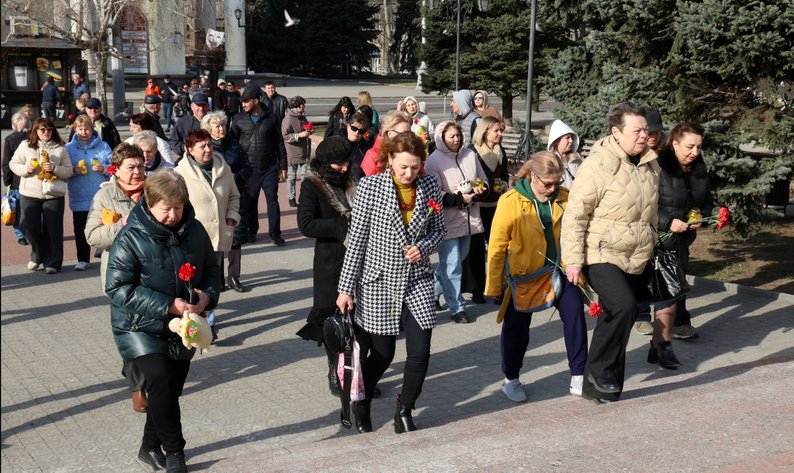 У Запоріжжі, у четверті роковини, вшанували пам’ять загиблих маріупольців внаслідок російського авіаудару по драмтеатру 16 березня 2022 року. Суспільне Запоріжжя