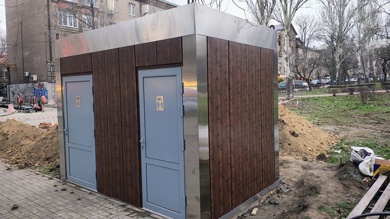 У Запоріжжі завершили встановлення громадського туалету на майдані Митців (колишня площа Маяковського) на місці, де понад 30 років місцеві художники експонують свої картини.
