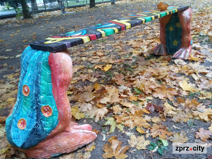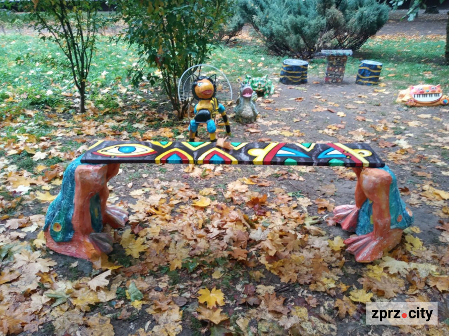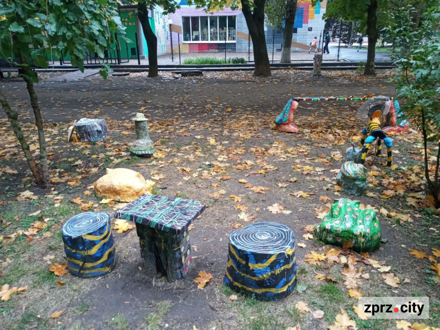 Лавка з ногами, кіт з посмішкою з клавіш, фантастична зелена істота, розумні равлики, стовпчики у мозаїці та інші незвичайні скульптури – ці та інші незвичайні артоб’єкти можна побачити біля школи мистецтв № 3, що у Хортицькому районі Запоріжжя.