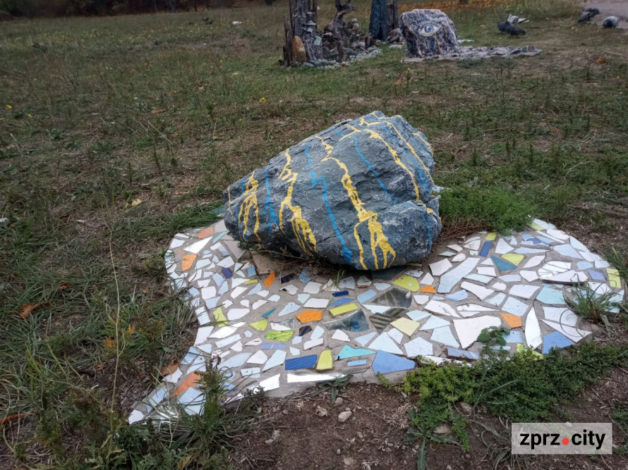 Артоб’єкти з’являлися тут поступово. Днями їх побільшало — у їхнього автора народилась шоста онука і на честь цієї події він додав на локацію ще більше стрітарту. Це приватна ініціатива запорізького художника Сергія Савченка, що живе та творить у Хортицькому районі.