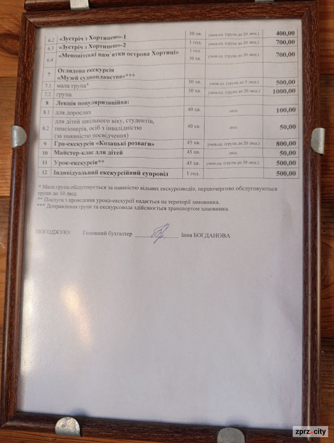 Телефони заповідника «Хортиця» для довідок: 096-254-12-09, 095-914-77-06 (з 10.00 до 17.00). Т. приймальні 095-305-03-24.