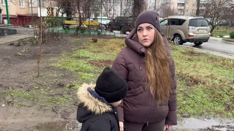 Анна разом з сином Рінатом, мешканці пошкодженої багатоповерхівки, 29 січня. Суспільне Запоріжжя