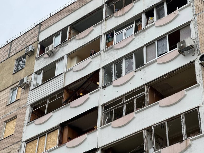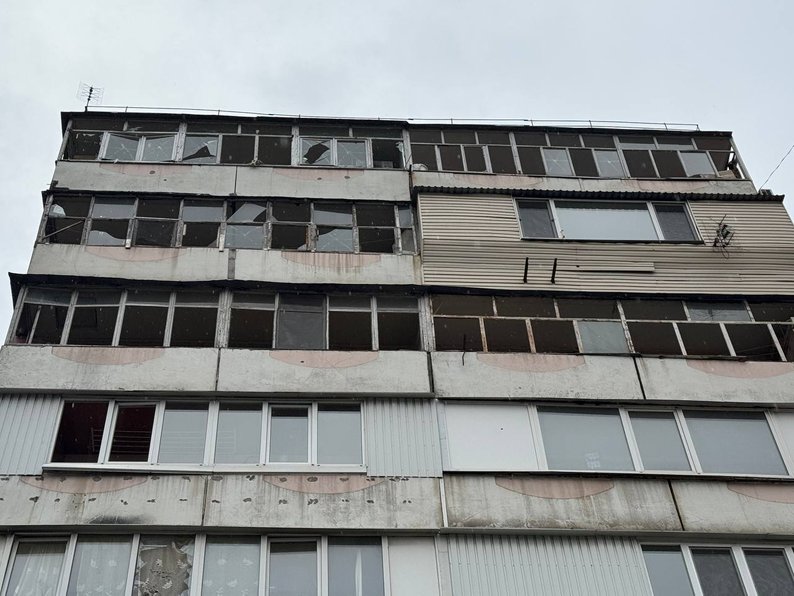 Пошкоджений багатоповерховий будинок через атаку РФ, 29 січня. Суспільне Запоріжжя
