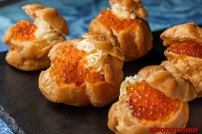 Заварні канапки з червоною ікрою та крем-сиром