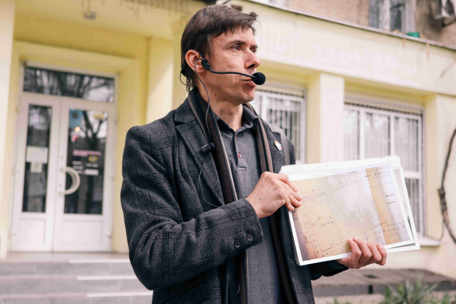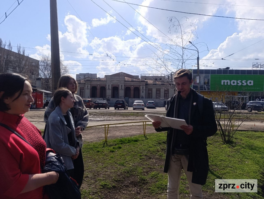 Директор Музею архітектури Запоріжжя, історик Михайло Мордовськой провів нас Старим містом, показуючи, як минулі війни та історичні потрясіння залишили слід у міському середовищі.