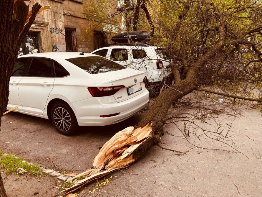 Окремі випадки наслідків негоди фіксують і очевидці. Зокрема, на вулиці Кияшка дерево впало просто на автомобіль — транспортний засіб зазнав серйозних пошкоджень, на місці працюють правоохоронці та відповідні служби.