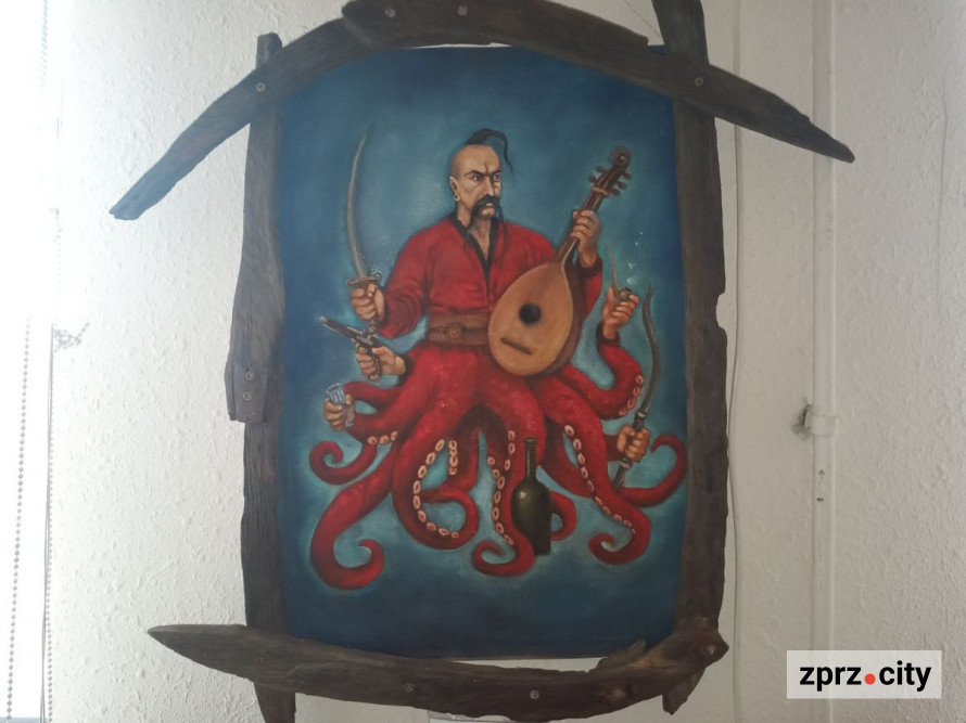 «Хлопці з підрозділу «Кракен» замовили картину. Я запропонувала такий варіант, напівлюдини-напівкракена, об’єднавши образи Мамая і міфічної істоти. Картина мені так сподобалась, що я попросила залишити її собі (ця робота на виставці), а хлопцям написати нову. Вчора закінчила другого «Кракена», а він ще краще. Мабуть, віддам першого», — розповіла zprz.city Яна Ясунас.