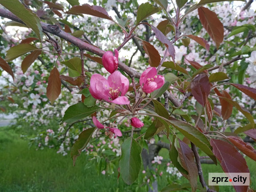 На фото Світлани Олійник: декоративні яблуні у запорізькому парку Героїв Національної гвардії України