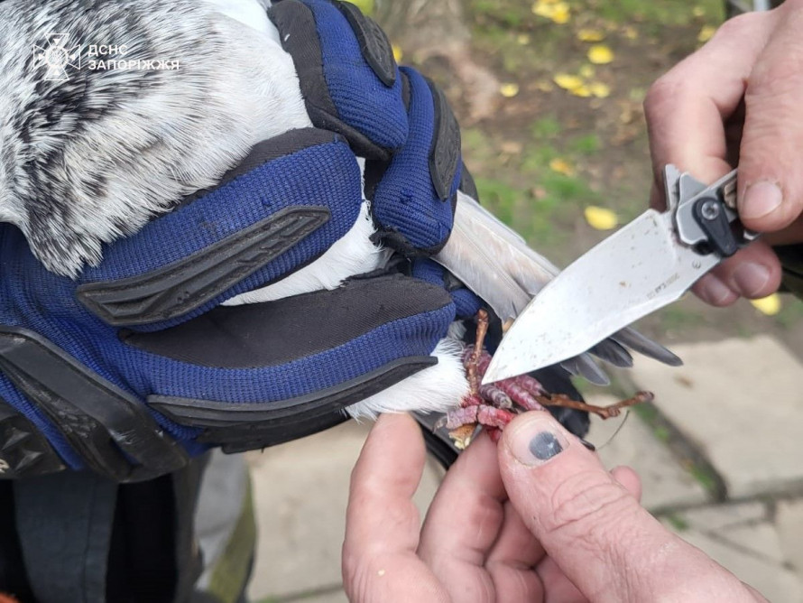 Після цього надзвичайники звільнили лапки голуба від рибальської волосіні, яка міцно обплутала кінцівки. Коли птах був повністю звільнений, його відпустили на волю.