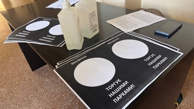 Плакати активістів «Він/вона _ торгує нашими парками!». Суспільне Запоріжжя