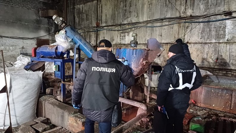 Правоохоронці на місці переробки пластикової крихти. ГУ Національної поліції Запорізької області