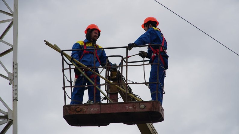 Електромонтери АТ «Запоріжжяобленерго» виконують роботу на одній із локацій, лютий 2024 року. Суспільне Запоріжжя