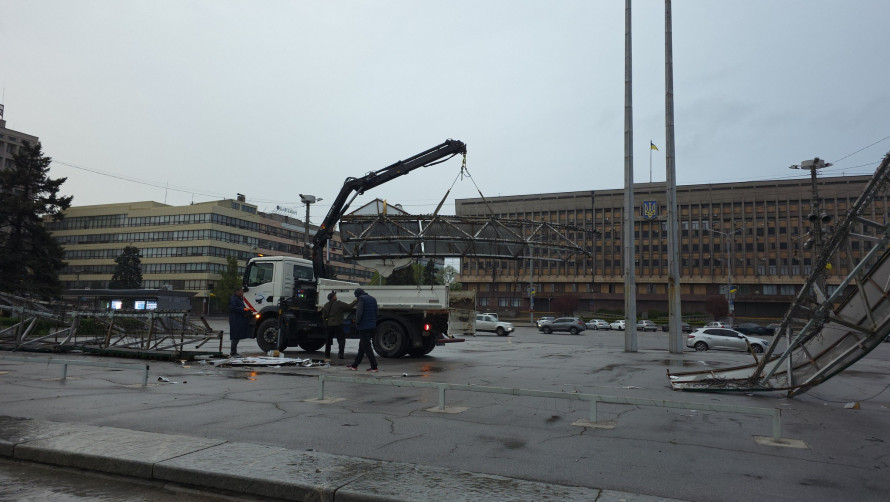 У Районній адміністрація ЗМР по Вознесенівському району повідомили, що «КП «Елуаш» демонтувало аварійну конструкцію, пошкоджену внаслідок негоди на площі Фестивальній, та прибрало територію, привівши її до безпечного стану».